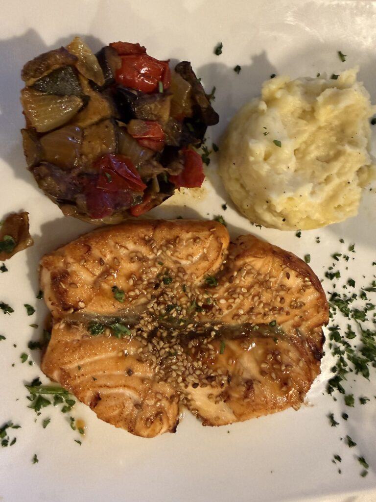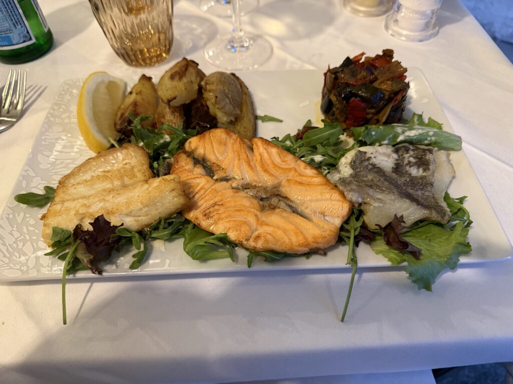 Maten var en stor besvikelse över lag på denna restaurang. Fisken som vi beställt in var alla mer eller mindre överlagade, torra och smaklösa, särskilt laxen. Om jag säger att potatismoset var det nda som var gott på min tallrik, så förstår ni.