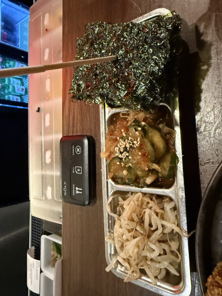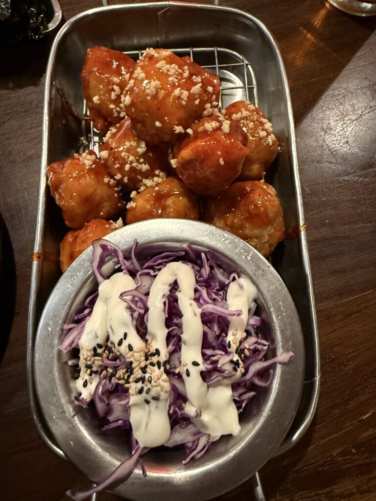 När vi nu har anlänt och fått i oss lite mat så är vi redan tillbaka på hotellet för sömn kl. 21.30. Hoppas på en god natts sömn nu inför morgondagen. Men innan dess måste jag ju berätta att vi bestämt att vi för kvällen bara skulle ta en restaurang som låg nära, vad som. Men plötsligt får jag sådan lust att äta koreanskt, kanske för att vi just nu plöjer igenom Culinary Class Wars andra säsong på Netflix, tillsammans med Johannes. Så det visade sig att det bara var 4 minuters gångväg till SSAM som var en cool koreansk restaurang. Vi beställde in lite olika rätter såsom olika versioner på crispy chicken, Spicy cucumber salad och deep fried dumplings med Chili mayo. Till detta serverades också rödkålssallad och picklad rättika. Gott gotti gott gott! Godnatt!
