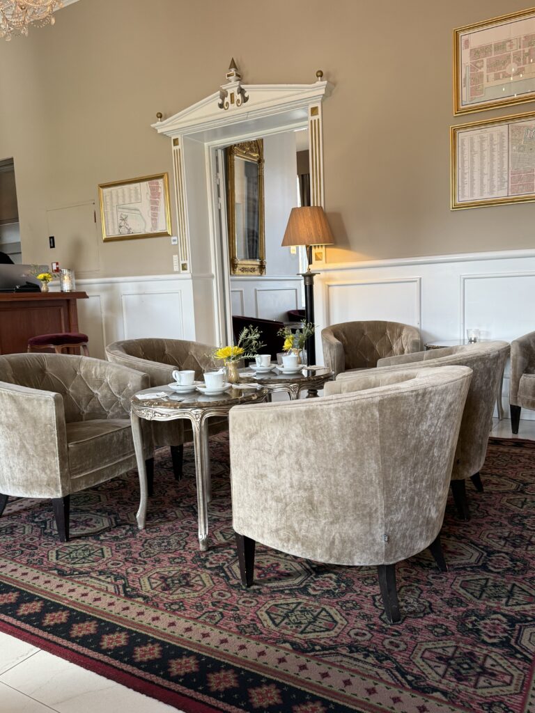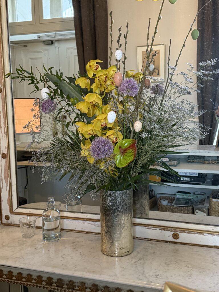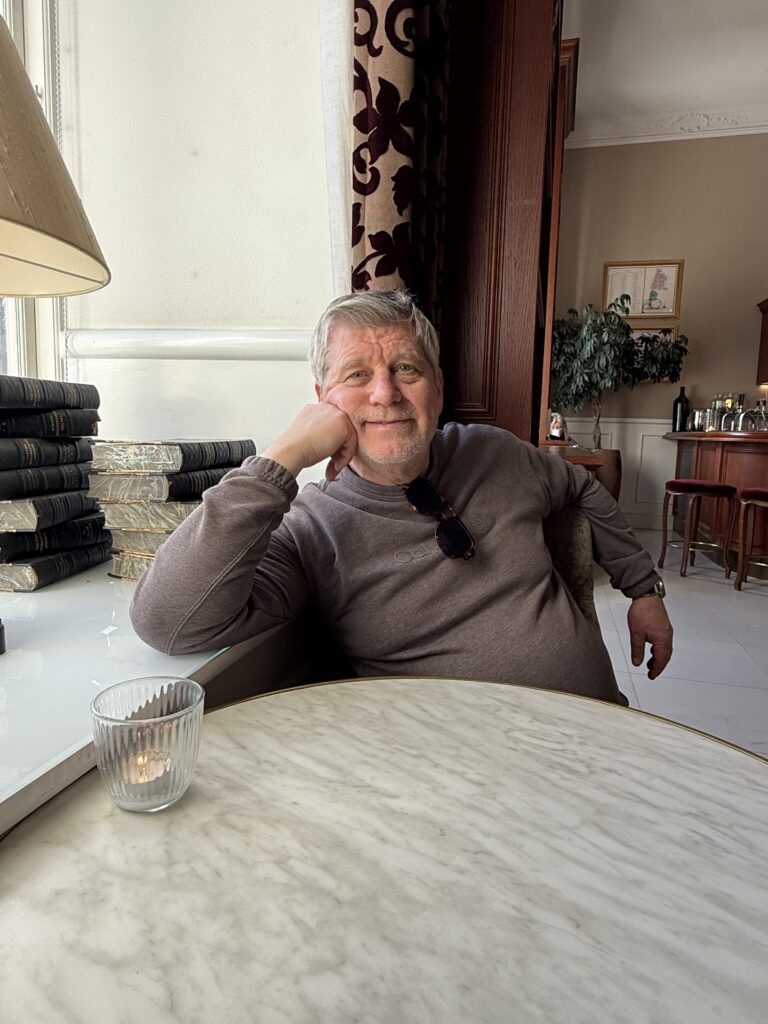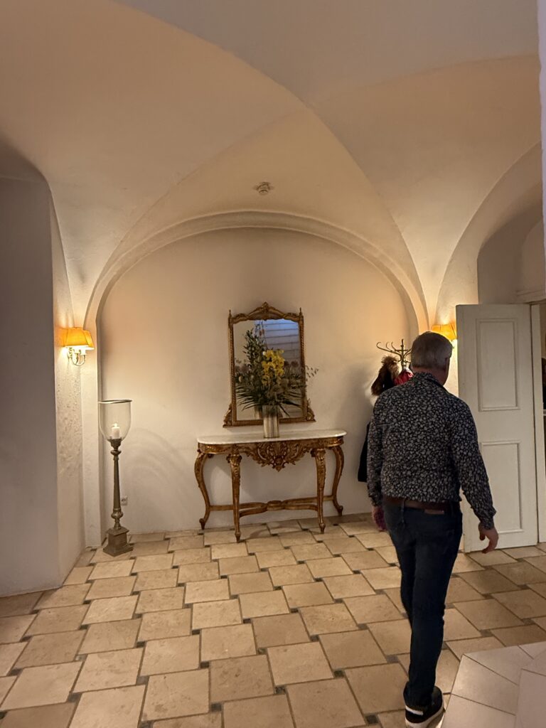 Fredagen den 27/3 2026 så tog vi en kortare shoppingpromenad med noll resultat. Det gör VÄLDIGT ont att halta genom Köpenhamns gator hängande vid Ulfs arm för stöd. Men kanhända att jag föddes med lite enviset och kämpade på ändå. Vi tog en enkel lunch innan vi hoppade på tåget till Kokkedal. Ifrån Kokkedals station upp till slottet är det normalt en perfekt lagom promenad med kabinväskor. Men inte idag, foten är väldigt svullen och till kvällen kommer jag återigen igen ”tvingas” ha ”klackskor” till kvällens outfit. Så vi besparar foten den utmaningen och tar taxi. När vi kommit till slottet och hängt upp kläderna till kvällen, så tog vi oss till biblioteksbaren och tog en drink innan det var dags för lite vila i högläge innan kvällen.