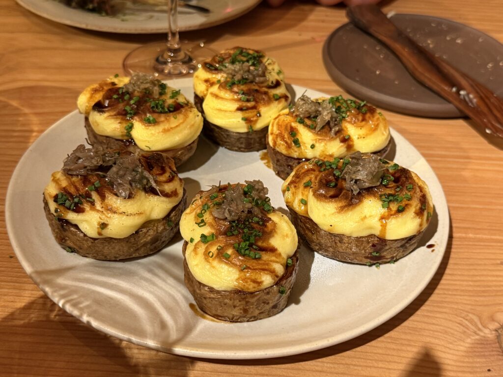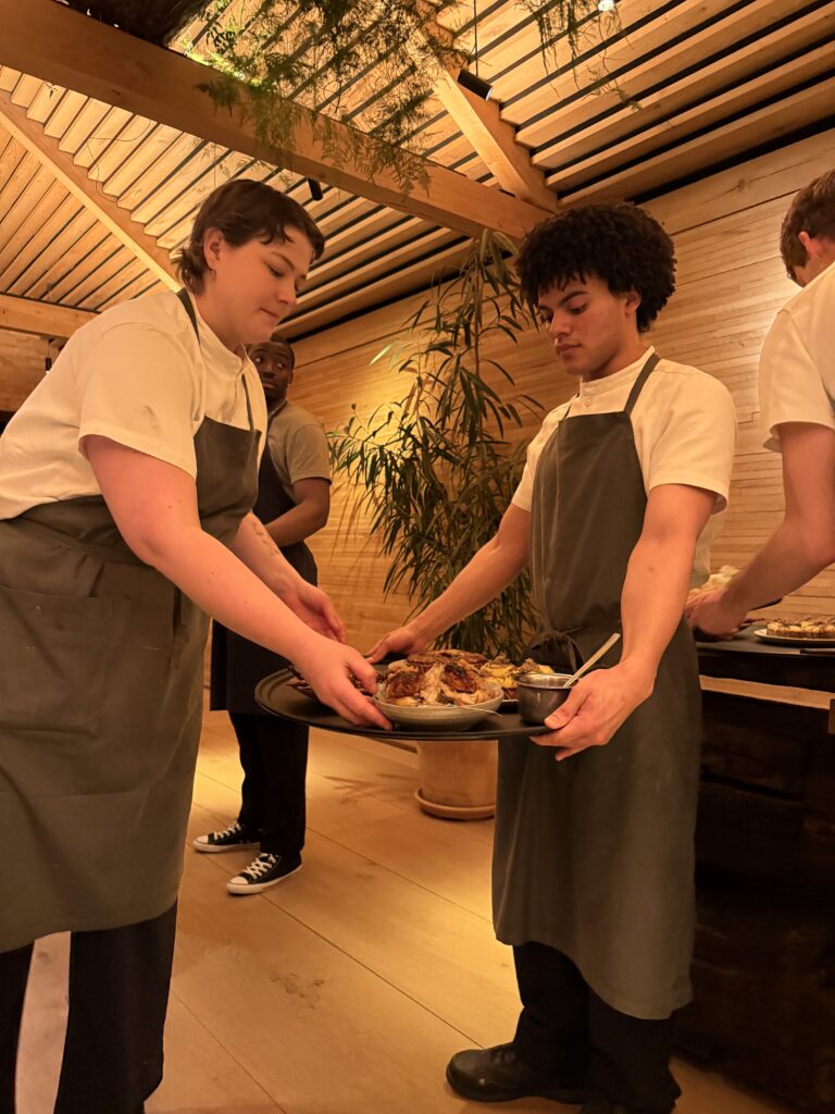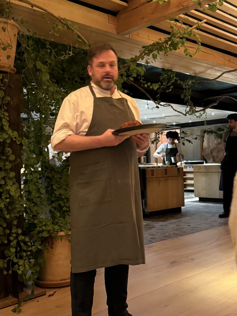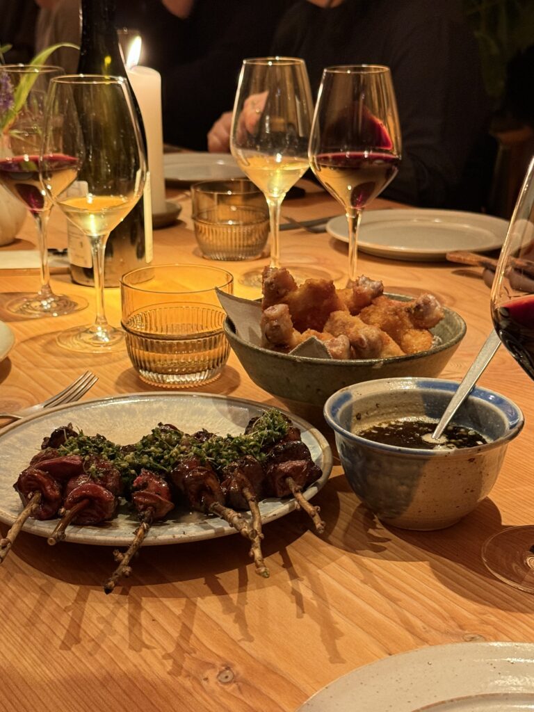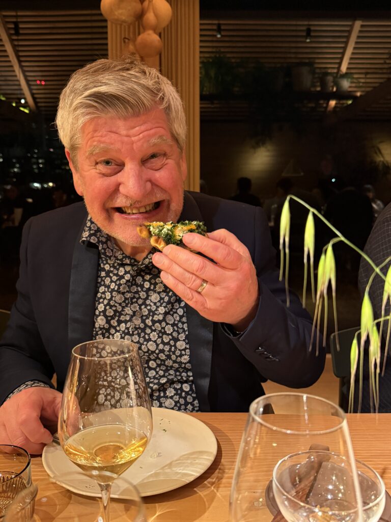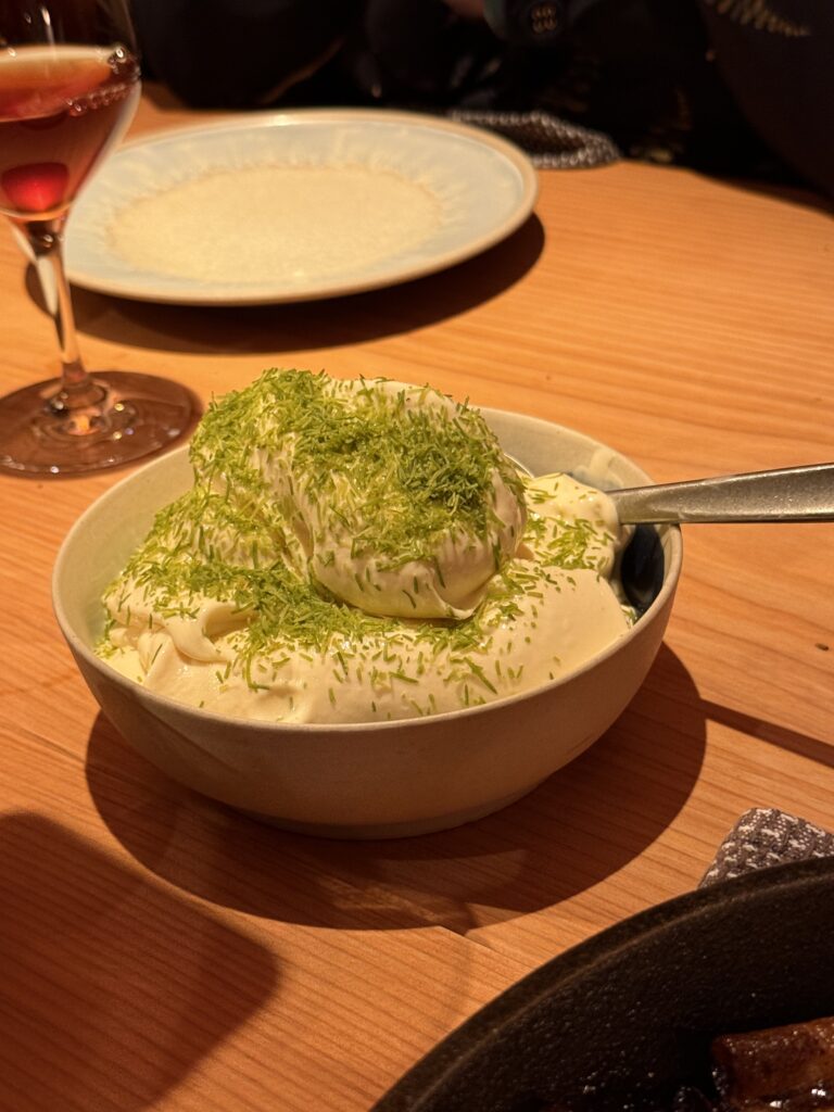 Nog om min klumpighet och över till kvällens roligheter. Vi hade dels åkt till Köpenhamn för att i NOMA:s utlånade lokaler äta på en Pop up- restaurang som heter BARR. Vi var 50 personer som satt vid ett enda långt långbord. Vi hamnade med ett supergulligt ungt danskt par och ett par i vår egen ålder från Nederländerna. Hennes ena son visade sig äga en 1-stjärnig Michelinrestaurang i Amsterdam som heter Bistro De La Mer. Den får vi försöka prova någon gång framöver. Kvällens meny bestod av fem rätter med vinpaket av naturviner till. Kycklingrätten var kreativ och god. Man använde sig av olika olika delar och med olika tillagningssätt t.ex ugnsbakat bröst, paj, inälvsspett, glaserade vingar och friterat lår. Desserten med pannkakor och bär var god men höjdpunkten var ändå glassen med någon form av björkextrakt. Maten var genuin och okej men inte fantastisk. Ibland vet jag inte riktigt vad som är okej, bra eller fantastiskt. Ulf säger då att jag är för bortskämd.