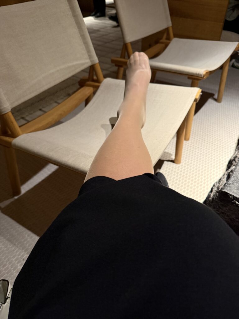Efter maten och innan hemfärd med taxi så avslutade vi med en drink i loungen med en svullen och lite blå fot i högläge.