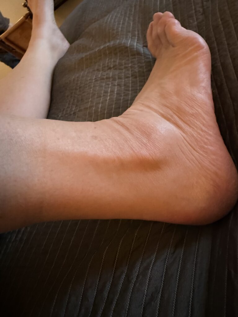 När vi gick ut därifrån så visade det sig vara en trottoarkant typ 7 cm hög, som jag fullständigt missade😳 Enligt mig själv så kändes det som ett väldigt graciöst och smått filmiskt fall. Ulfs version av fallet var att jag föll handlöst, klumpigt och helt ograciöst. När jag lyfter mitt huvud för att ta mig upp igen så ser jag att ”alla” på restaurangen sätter sig ner, efter att ha kollat in den klumpiga tantens fall. Jag fick ha stöd av Ulf då jag stukat till foten ordentligt. När vi haltat bort en bra bit bort så kommer det fram ett gulligt par med barnvagn och frågade om jag var okej? Jag sa att det var bara bra, lite ont i foten bara. De undrade ännu en gång om jag var alldeles säker på att jag verkligen var okej? Så troligen var inte fallet så himla graciöst som jag kände🙈. Vi fick halta tillbaka till hotellet och ligga med foten i högläge ett par timmar, för att vila inför kvällen.