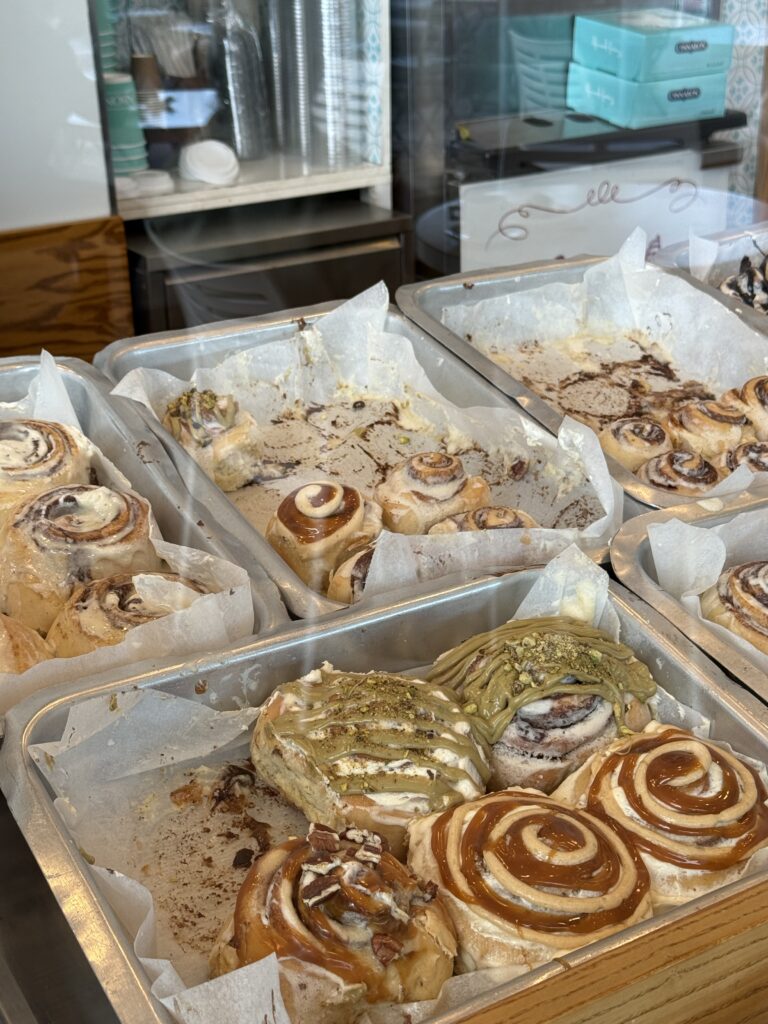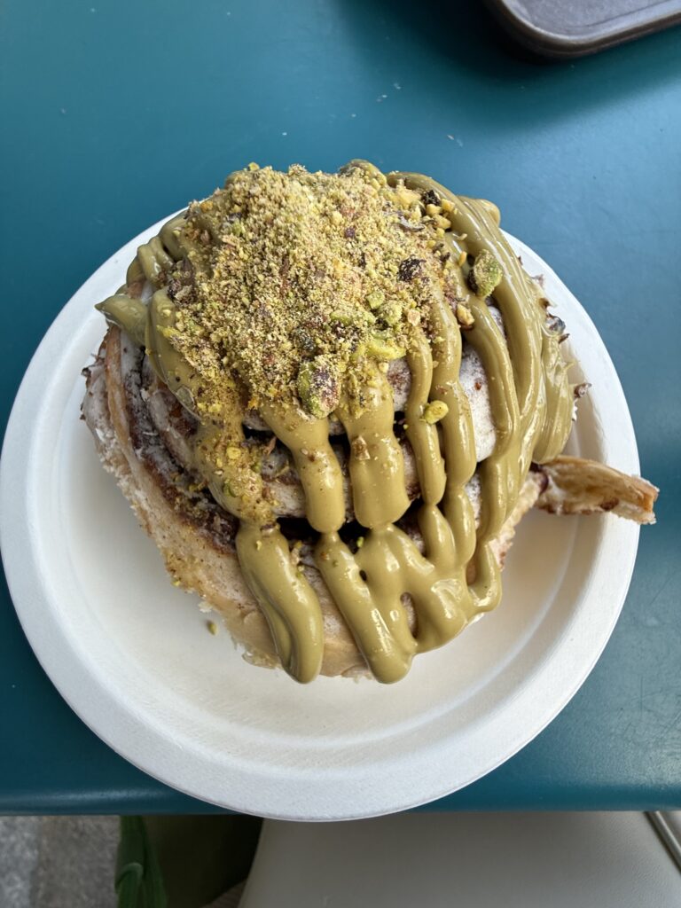 Vi tog en promenad till Cinnabon och tog en fika, mitt nya favoritställe. Alltså dessa pistagebullar är helt oemotståndliga. Däremot provade vi Nutellabullen också, inte alls lika god. Sen gick vi vidare till slaktaren och köpte kalvlägg och i fiskaffären köpte vi en bit tonfisk. Så kvällens meny hemma blev sedan;