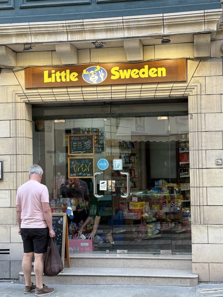 Innan vi gick tillbaka till lägenheten så ville jag gå förbi öns eller iallafall Sliemas ”svenska butik”. Den heter ”Little Sweden”. Det var spännande att se vad de sålde. Till min lycka så hade de bland annat räkost på tub. De hade också lösgodis med saltlakrits. Allt i den butiken kostade ungefär dubbelt så mycket eller X3 så mycket, mot vad det kostar i Sverige. Jag tog 10-15 bitar saltlakrits och Ulf frågade mig då om jag hade glömt att jag inte äter godis längre? Det hade jag glömt, Oooops!!