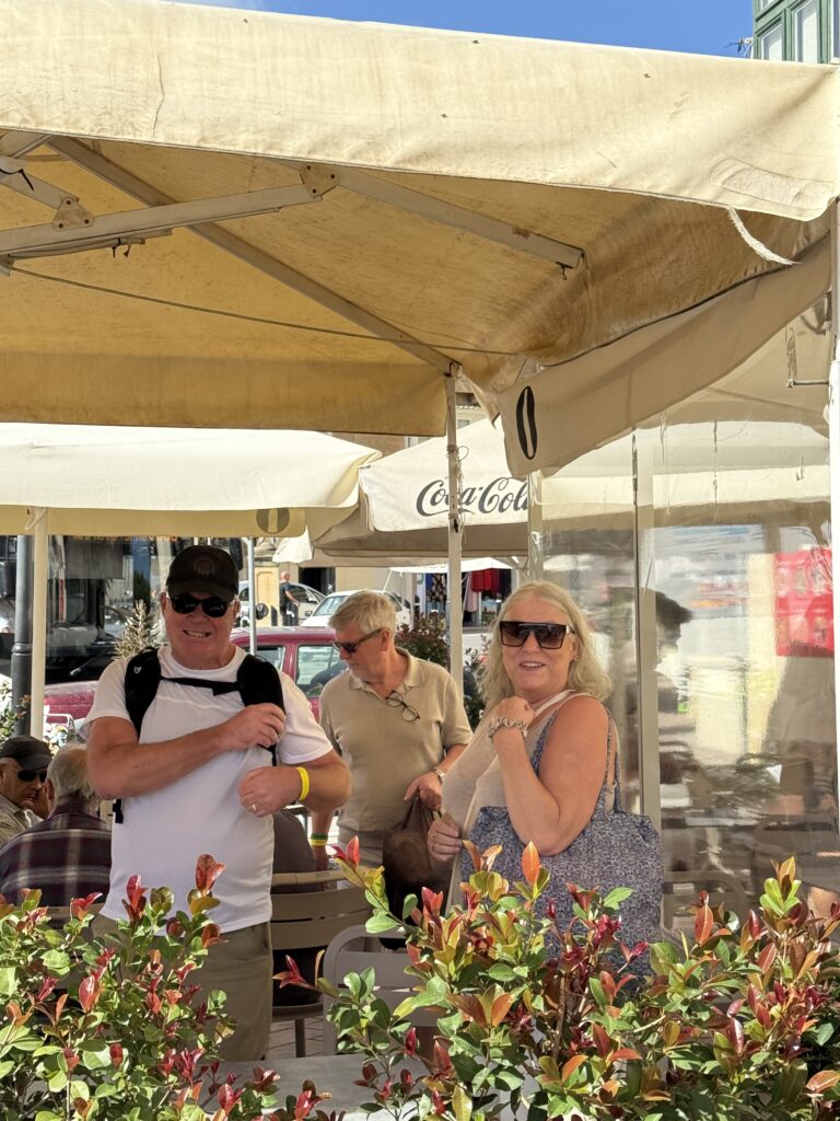 Medan vi satt och åt så kom det ett litet ”glädjetåg”, med sjungande damer, som vinkade glatt när de såg att jag filmade dem.