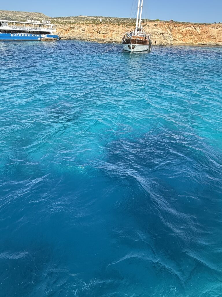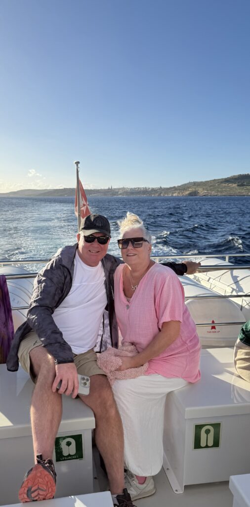 Äntligen skulle vi åka på den berömda utflykten till Gozo och Comino. Magen kändes något bättre idag, så jag tänkte att det får bära eller brista idag. Det var en 7 timmars båtutflykt till öarna Gozo och Comino. Ditresan var lite av en utmaning för flera resenärer då det var för att citera båtens kapten: ” Det kommer att bli lite rock’n roll utan rock’n roll”. Som tur var så hade jag försett mig och Yvonne med sjösjukeplåster. Det var en ganska skumpig 1,5 timmes ditväg.