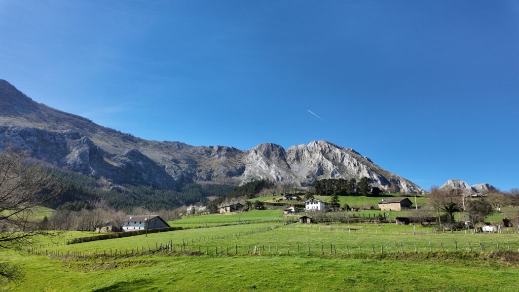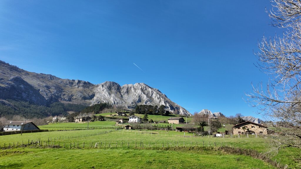 Txispa ligger väldigt fint med de Baskiska bergen som en vacker kuliss. Oerhört vackert samtidigt som det är klarblå himmel och ca. 20 C.grader. De två första bilderna här nedan, var där vi bodde under natten.