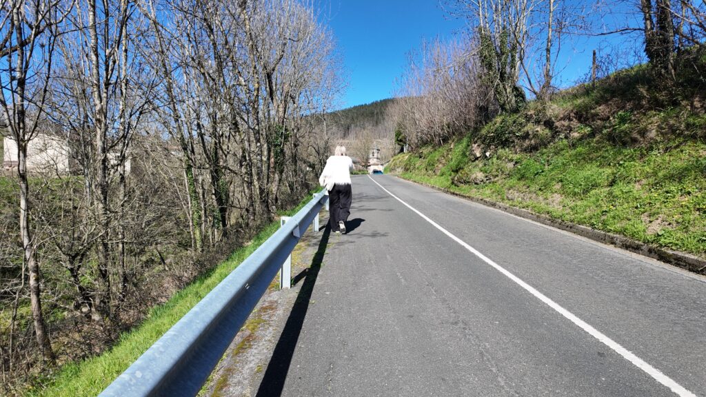 Här är vi på väg till restaurangen, vi valde att promenera ca. 20 minuter dit. Vi Vi visste då inte att det var nerför vårt ”kulle” och ner i byn och sedan uppför nästa ”kulle”.