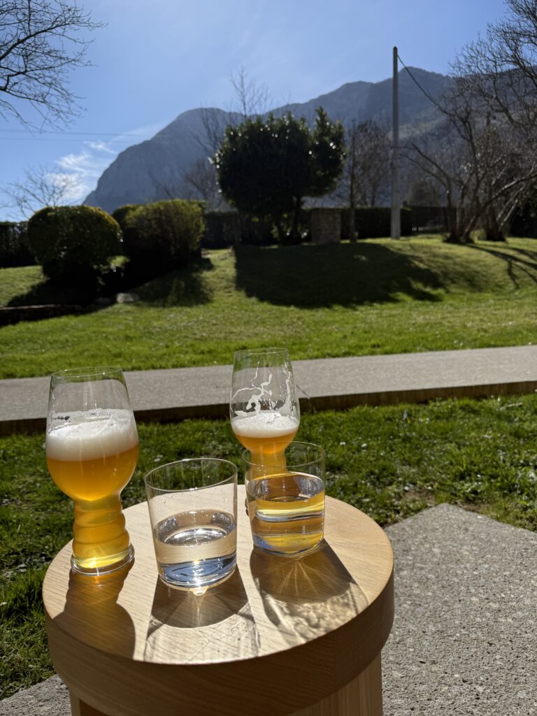Så när vi väl var uppe, så var vi supervarma och fick sätta oss ute i solen och serverades på vårt önskemål först öl & vatten. De var imponerade att vi gått upp dit i värmen.