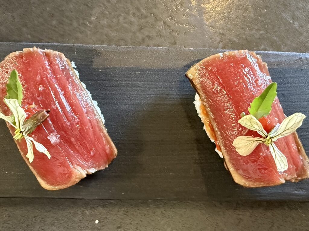 Munsbitar från köket var följande; grillad Leek, Euskal sushi och Bao Txorizo.