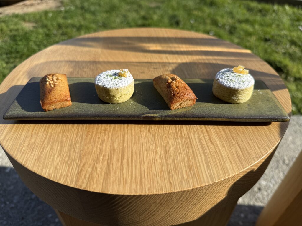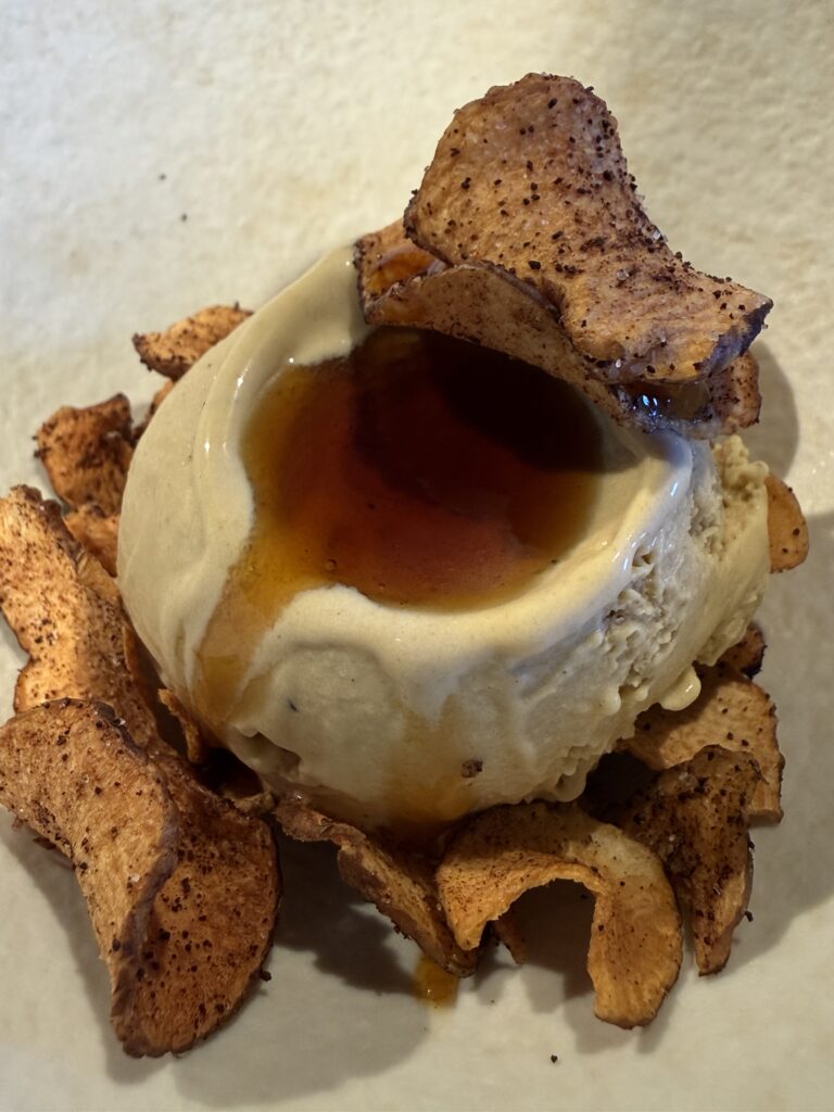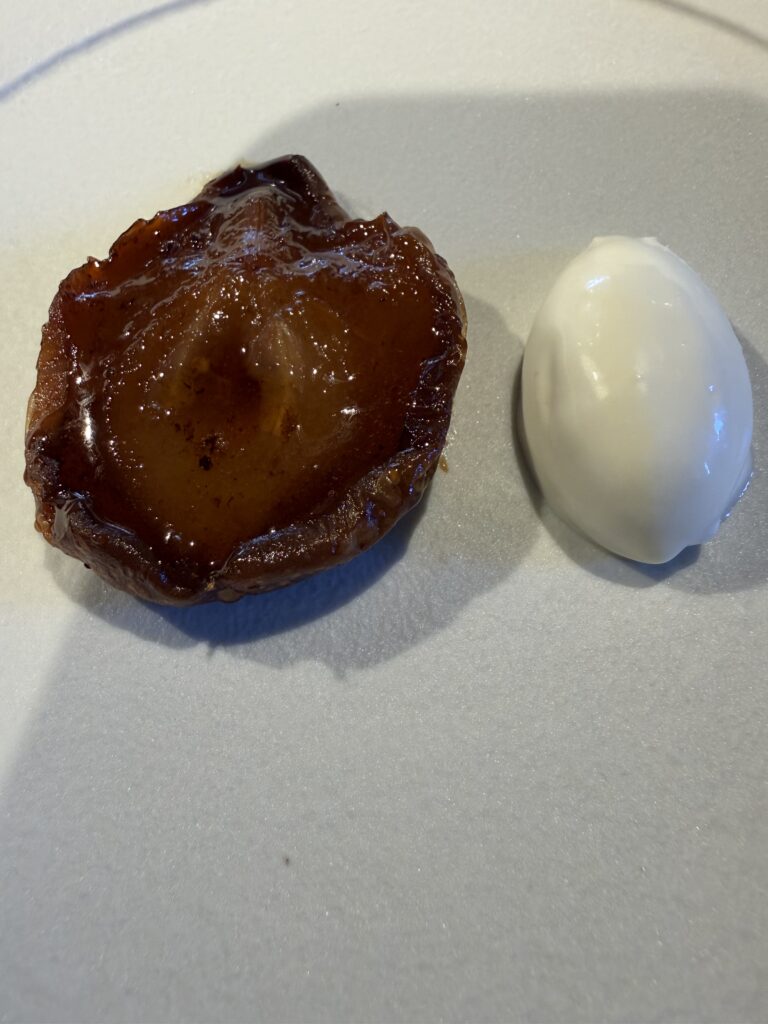 Sedan var det dags att avsluta middagen vid bordet med tre desserter, pear, Jerusalem Artichoke and Flan Sakura.