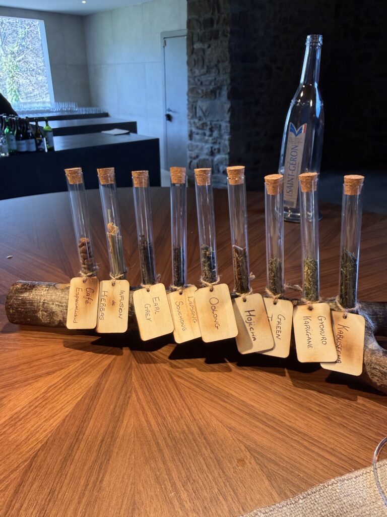Efter middagen serverades vi valfri dryck, utifrån dessa doftprover.