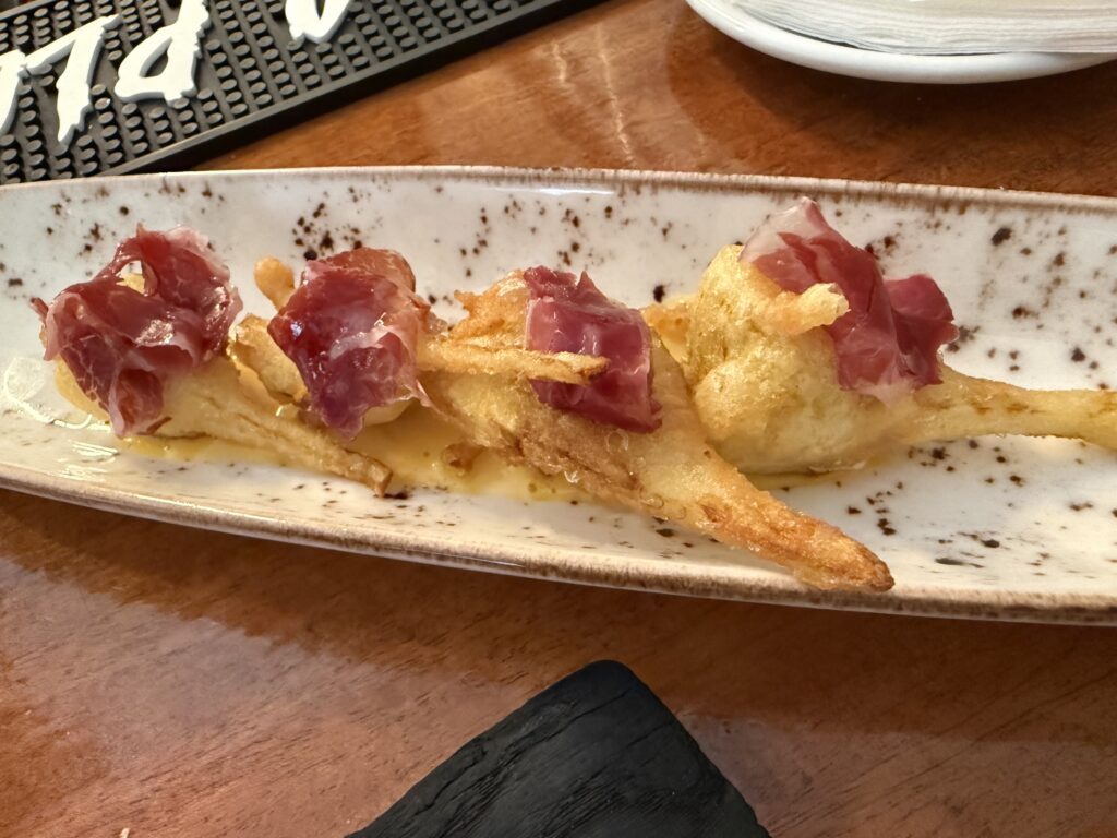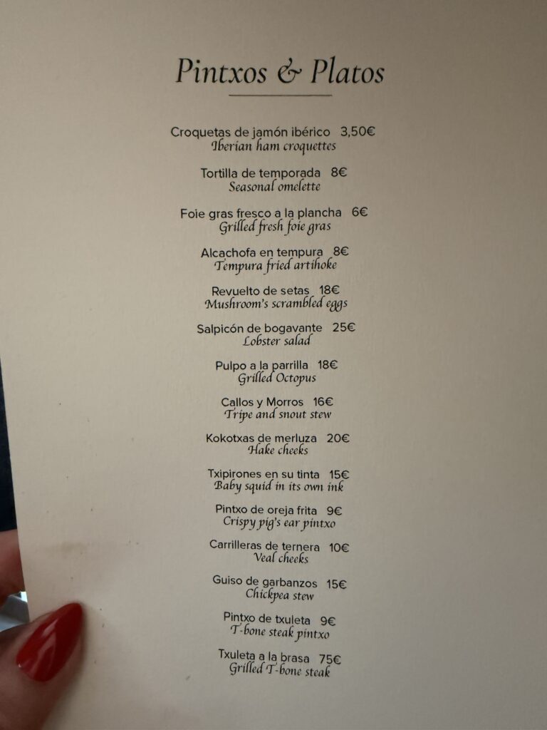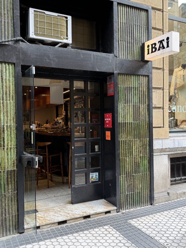 iBAi är en restaurang som har en stjärna i Michelinguiden, som vi varit på tidigare när vi varit här. Den ligger en trappa ner i en källarlokal. Men det som gör det här stället extra bra och gott är att de har behållit entrébaren där pintxos tillagas på på beställning av restaurangens kockar, perfekt för att njuta av ett glas vin till, helt informellt och avslappnat. Vi har varit där tidigare och kommer gärna tillbaka igen. För mig är nog denna delat med Gran Sol i Hondarribia de två bästa pinxtosbarer som jag varit på.