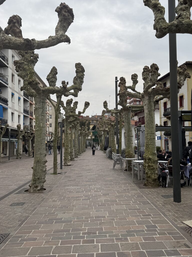 Ulf jobbade till 14-tiden och jag satt och skrev ikapp mig och la in bilder och filmer här på bloggen. Sedan gjorde vi oss iordning och hämtade hyrbilen i garaget. Ulf hade bestämt att han ville tillbaka till Gran Sol i Hondarribia. Det är ett av de absolut bästa Pinxtosställena i närheten av San Sebastian. Vi promenerade först 20 minuter till bilen och körde sen alltså en halvtimmes väg, bara för att äta där. När vi kommer fram så har de stängt. Det är ju lite si och så med öppettider mitt på dagen, säsongstider osv. Sedan ska man ju undvika och försöka hitta någonstans att äta mellan ca. kl. 14.00 – 19.00. Så utflykten blev helt misslyckad, vi promenerade lite, fick tag på lite ”nödmat” och åkte tillbaka till San Sebastián. Hondarribia är annars känt för sina gulliga och färgglada hus och är ett rätt mysigtställe, men väldigt dött och grått där, just idag vid den här tiden. Det ligger precis vid franska gränsen.