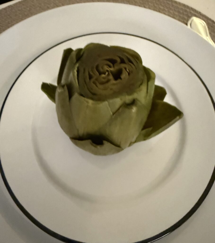 Förrätt: Primör Kronärtskockor med vitlök och clementinsås.