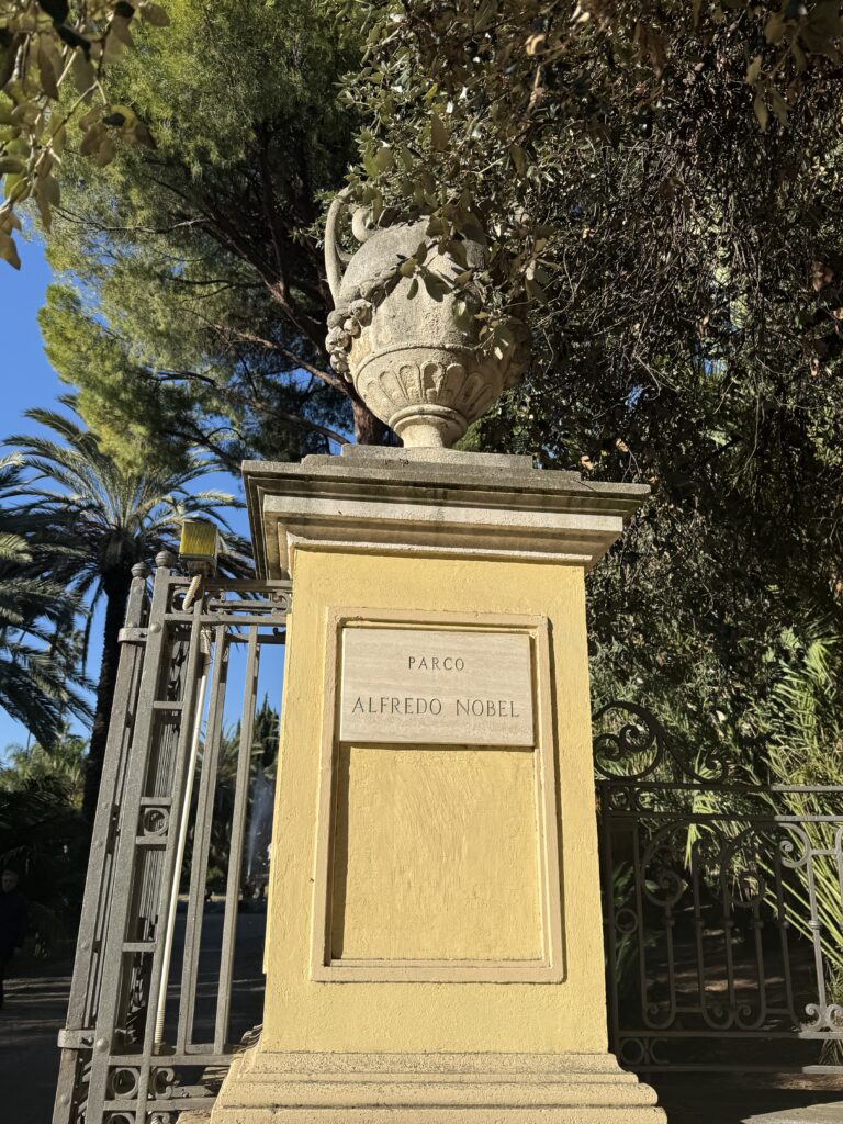 Jag hade kollat upp lite saker innan vi åkte ner hit och hade bestämt att vi som svenskar såklart skulle gå till Villa Alfred Nobel och hans park och museum. Sagt och gjort, vi gav oss ut vid 10.30-tiden, då de bara har öppet på fredagar och tisdagar mellan kl. 10-13.00. Det visade sig dock att de hade jul- och nyårsstängt såklart. Men vi såg det iallafall utifrån.